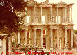 This was the state of restoration at the Library of Ephesus when Travis and Bond visited in 1981. Ephesus was the jewel of Asia and its library, famous throughout the classical world. Cleopatra restored it in ancient times, replenishing its collection from her own great library of Alexandria, and Travis did his part to restore its prestige by referencing it in his award-winning epic rhyme, "Grumpuss." "Here's a text from the Library at Ephesus, Alexandria, on the Nile, And Carthage and Rome." "Aye, and closer to home," Manuscripts from the Emerald Isle..." |